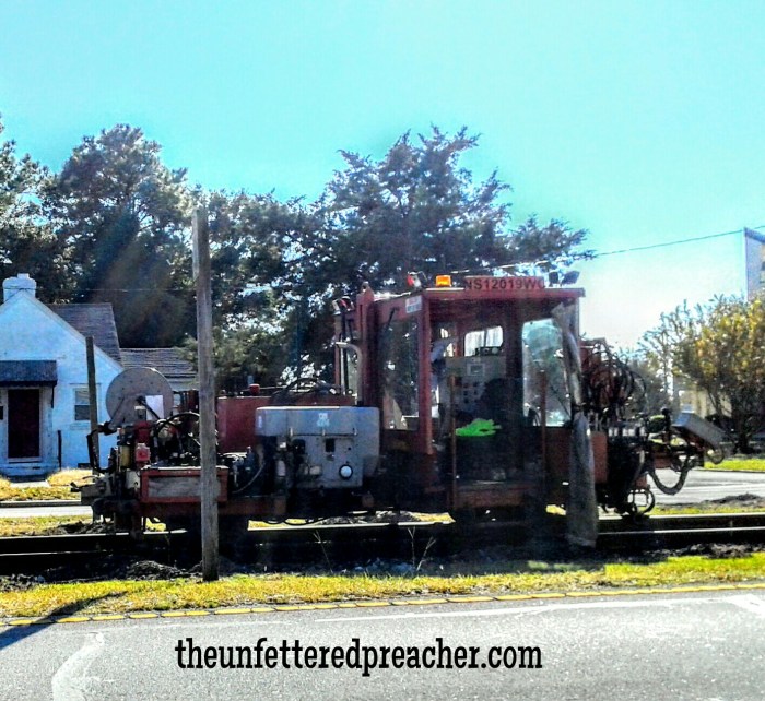 The Railroad runs in the middle of the street in Morehead City, NC. On my way east one morning I saw these machines. They reminded me of tools from the 50’s.