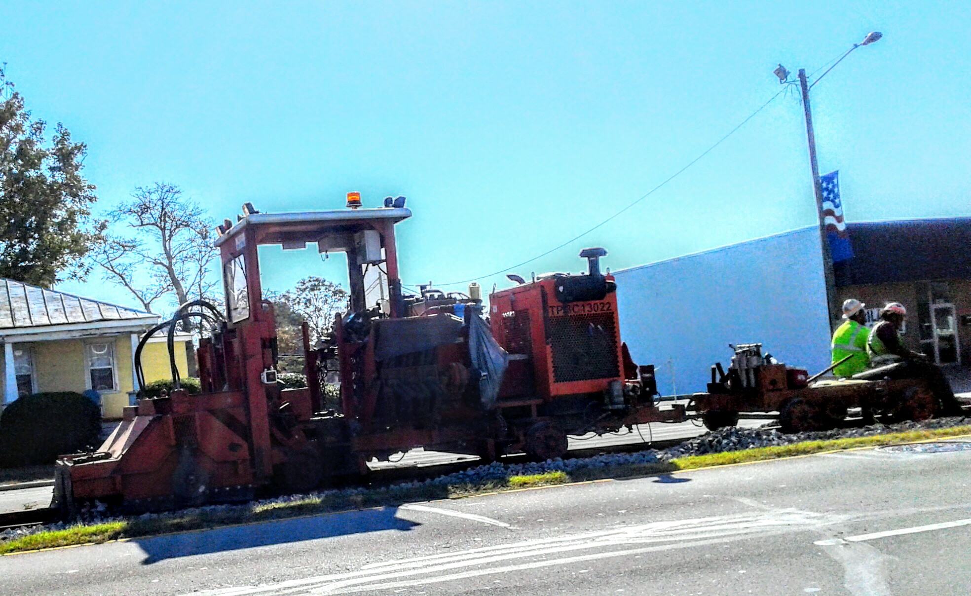 The Railroad runs in the middle of the street in Morehead City, NC. On my way east one morning I saw these machines. They reminded me of tools from the 50’s.