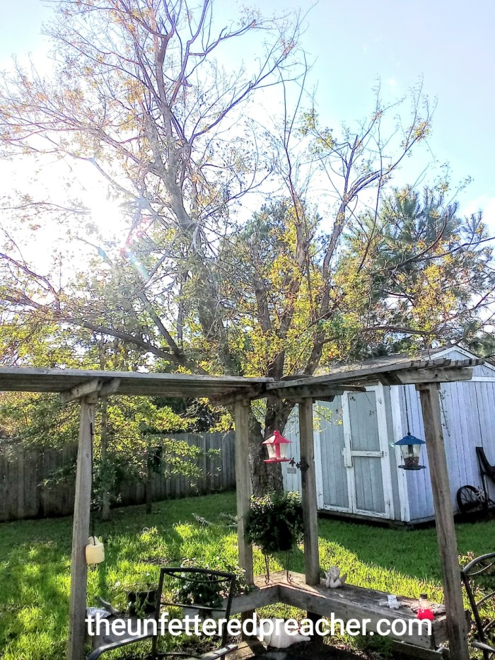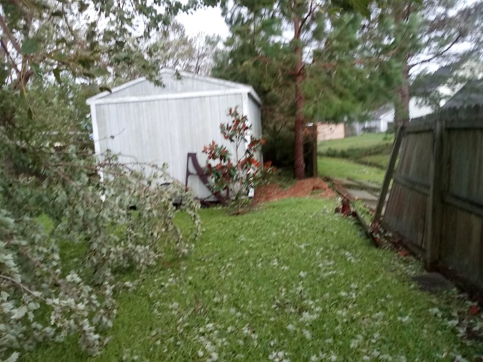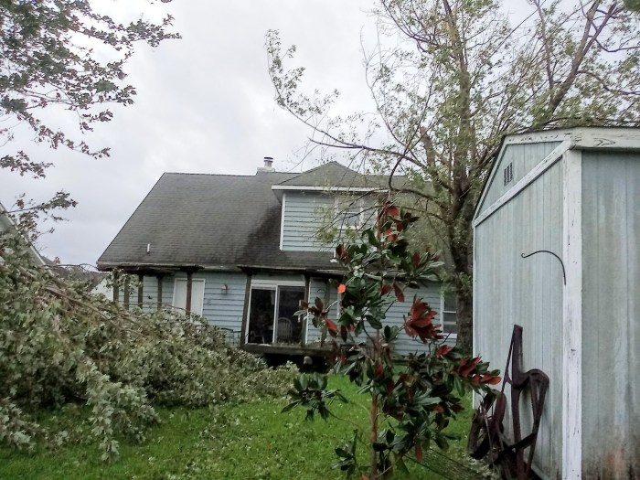 Our trees and fence did not fare as well. We also lost shingles from the roof. We had a time in the hot and dark. Our neighbors think we are old buzybodies. (We either sit out front or back, where it is cooler).