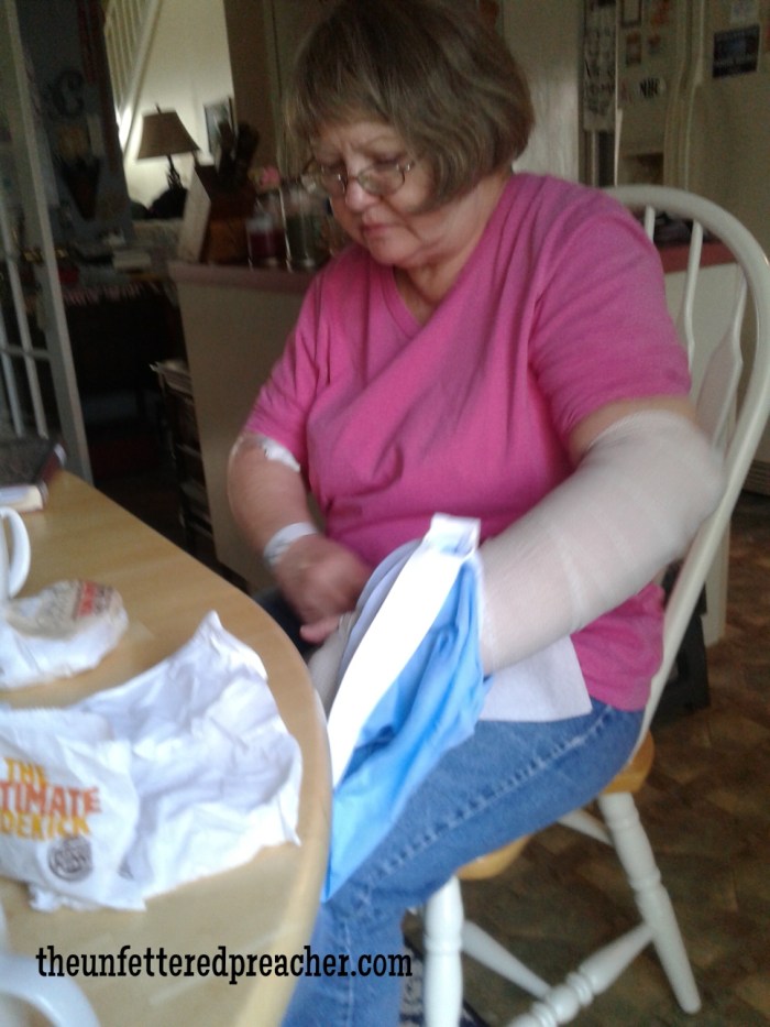 “Oh my goodness”, the only words spoken while, bones were being set.